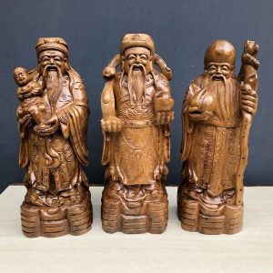 Đặt mua TƯỢNG DI LẶC TAM PHÚC NGỒI GỐC TÙNG GỖ GÕ LN-620